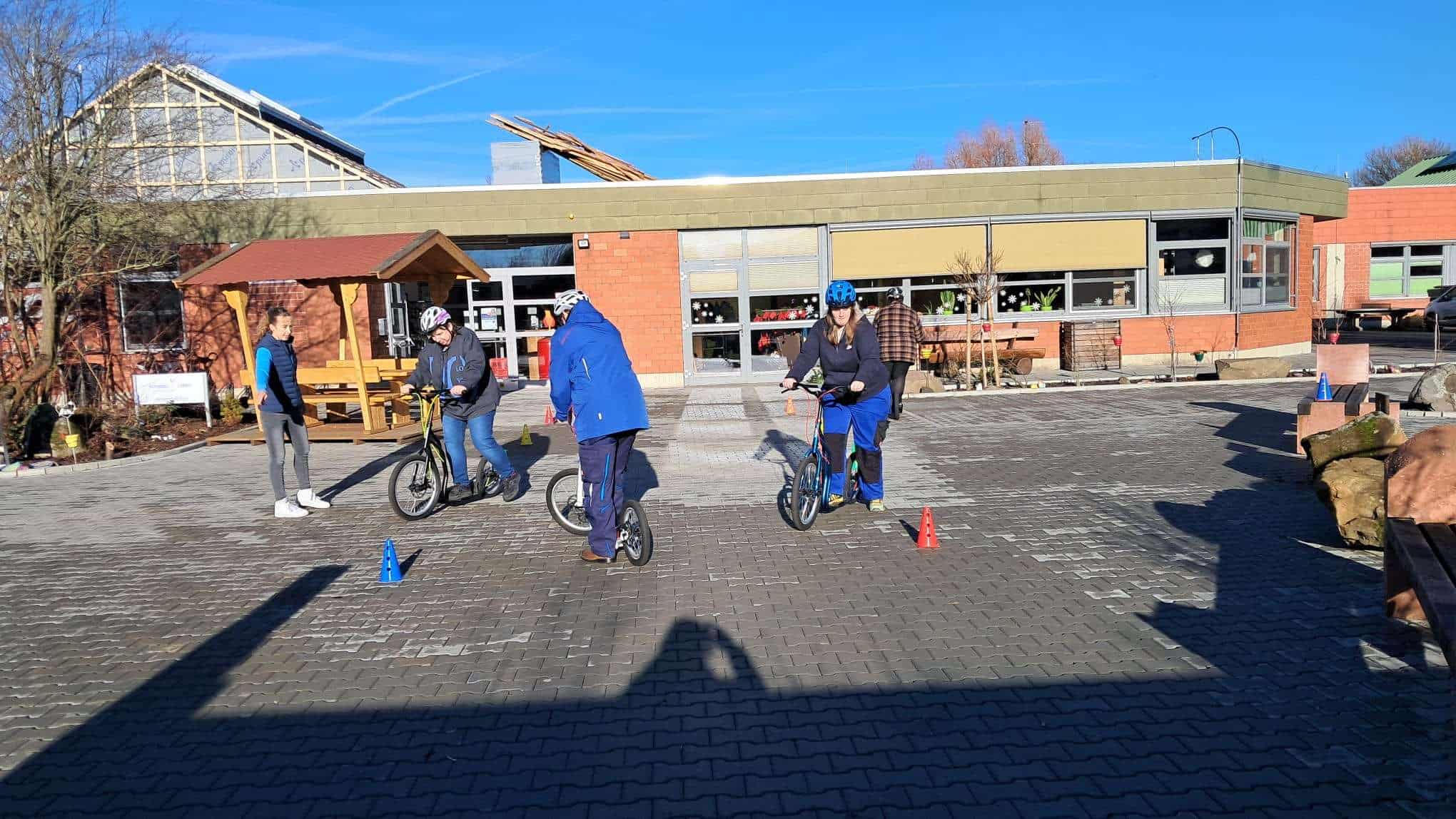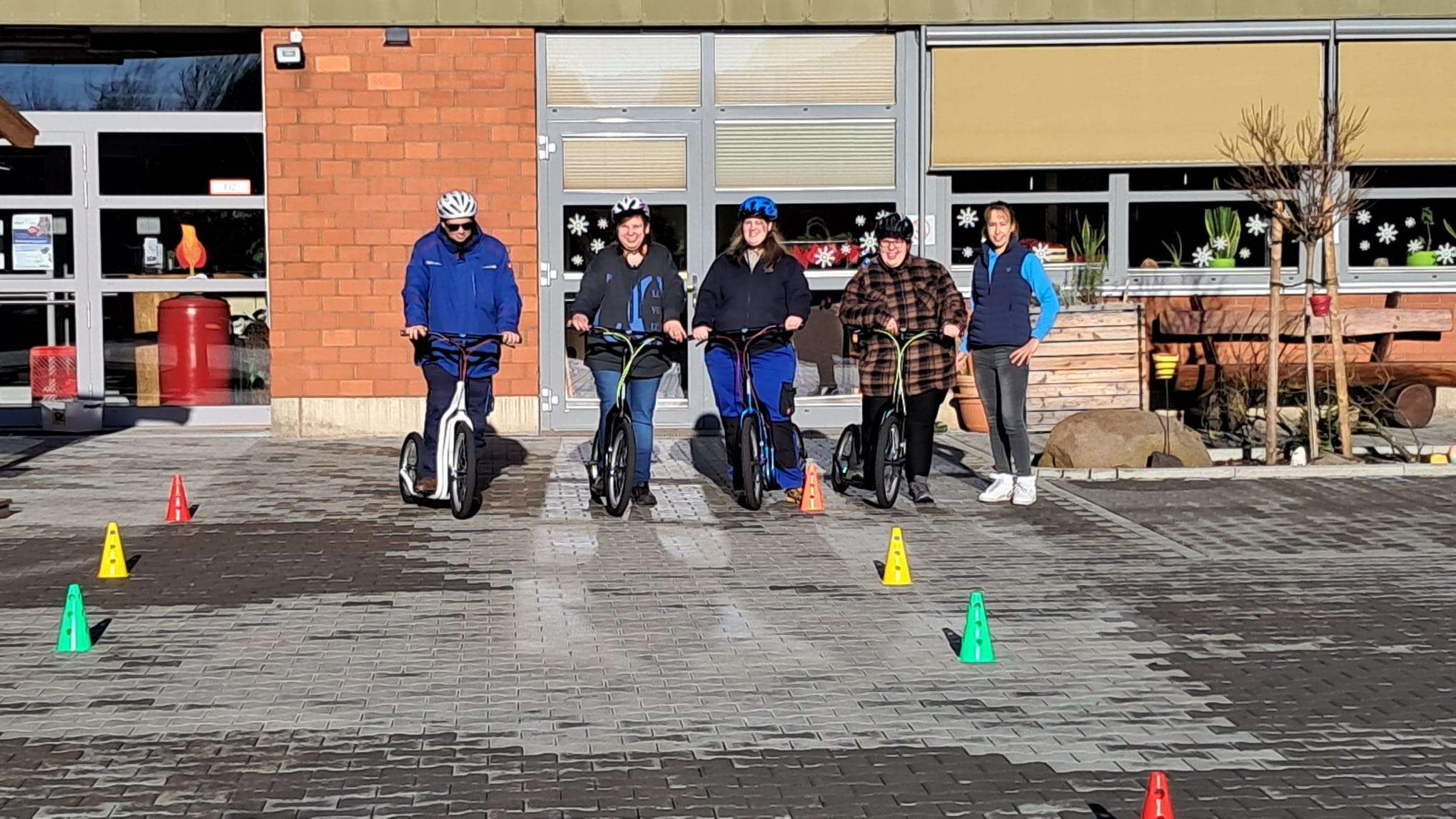 HERBSTEIN (pm) – Sie touren fröhlich mit ihren neuen Tretrollern über den Vorplatz der Werkstatt von Kompass Leben e.V. in Alsfeld und stärken damit – ganz nebenbei – ihre Gesundheit, ihre Ausdauer und soziale Integration. Denn die gemeinsame Bewegung bietet eine Möglichkeit der Begegnung und Teamarbeit. Die Sportgeräte, zu denen auch Indoor-Geräte wie Aerobic-Stepper und Bewegungsspiele gehören, sind durch eine Spende einer Kooperationsfirma von Kompass Leben e.V. möglich geworden. Die vielseitigen Sportgeräte kommen in der begleitenden Maßnahme „Aktivgruppe Spiel und Bewegung“ in der Werkstatt Alsfeld zum Einsatz und sorgen für eine abwechslungsreiche Gestaltung der einzelnen Stunden. „Auf diese Weise wird das Interesse an Sport und Bewegung geweckt und es zeigt sich, dass die Klientinnen und Klienten mit Freude und Spaß an den Aktivitäten teilnehmen“, berichtet Betreuerin Mareike Schmitt. Ergänzt werden die Gruppenangebote durch individuelle Trainingseinheiten, etwa auf dem Laufband.
