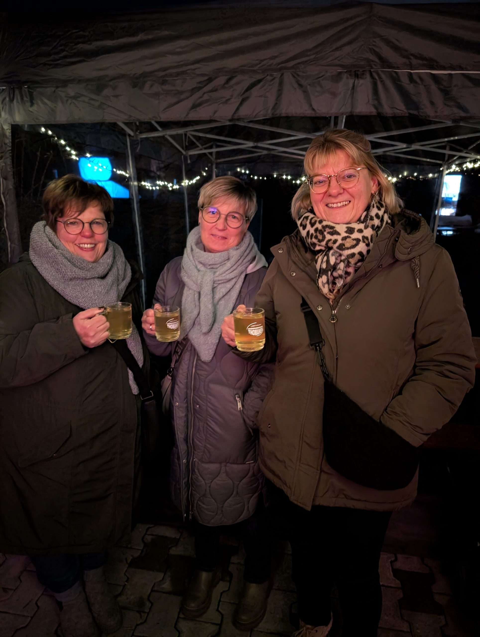 • Gäste genießen Glühwein: Adventliche Stimmung genießen diese drei Besucherinnen am Glühweinstand.
