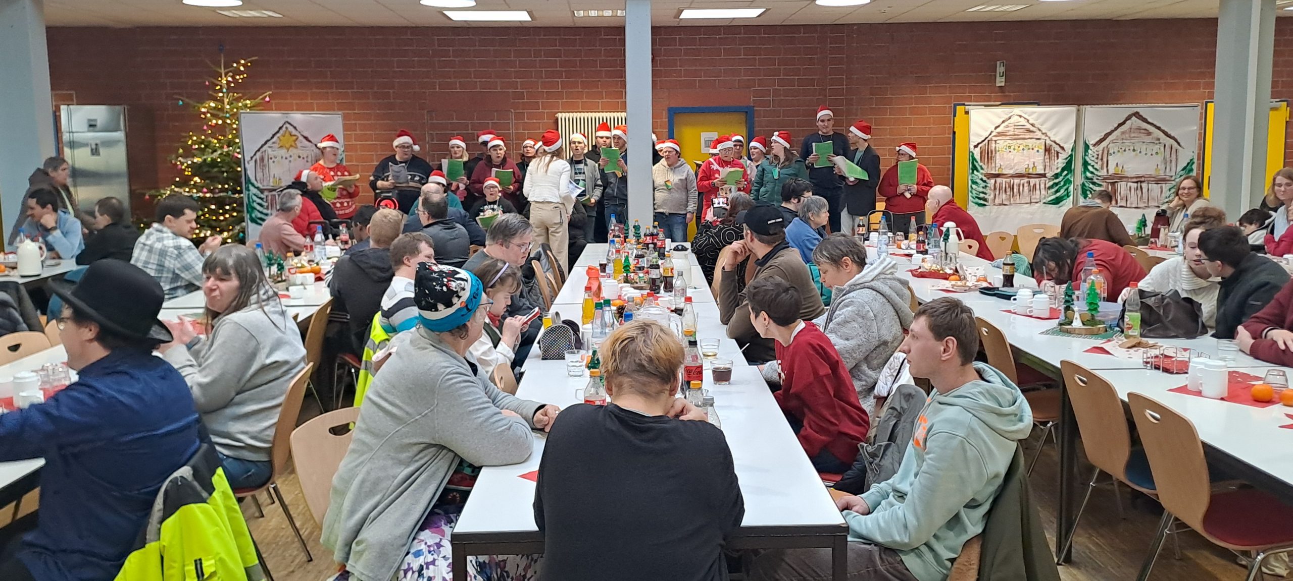 Unbeschwerter und fröhlich verlief die Weihnachtsfeier in der Werkstatt Herbstein. Die Tanzgruppe um Barbara Heinz begeisterte mit mehreren Auftritten, begleitet von musikalischen Darbietungen. Besonders stimmungsvoll war das gemeinsame Singen von „In der Weihnachtsbäckerei“, bei dem der voll besetzte Speisesaal begeistert mitsang.